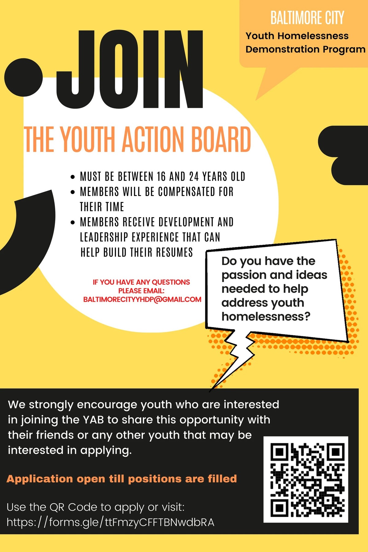 Established in 2017, the Youth Action Board (YAB) is comprised of young Baltimoreans (ages 16-24) with lived experience of homelessness and young allies.